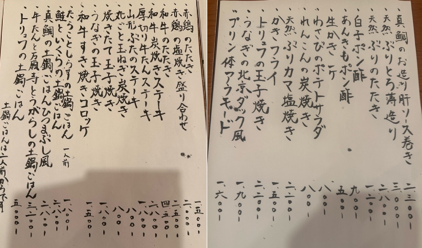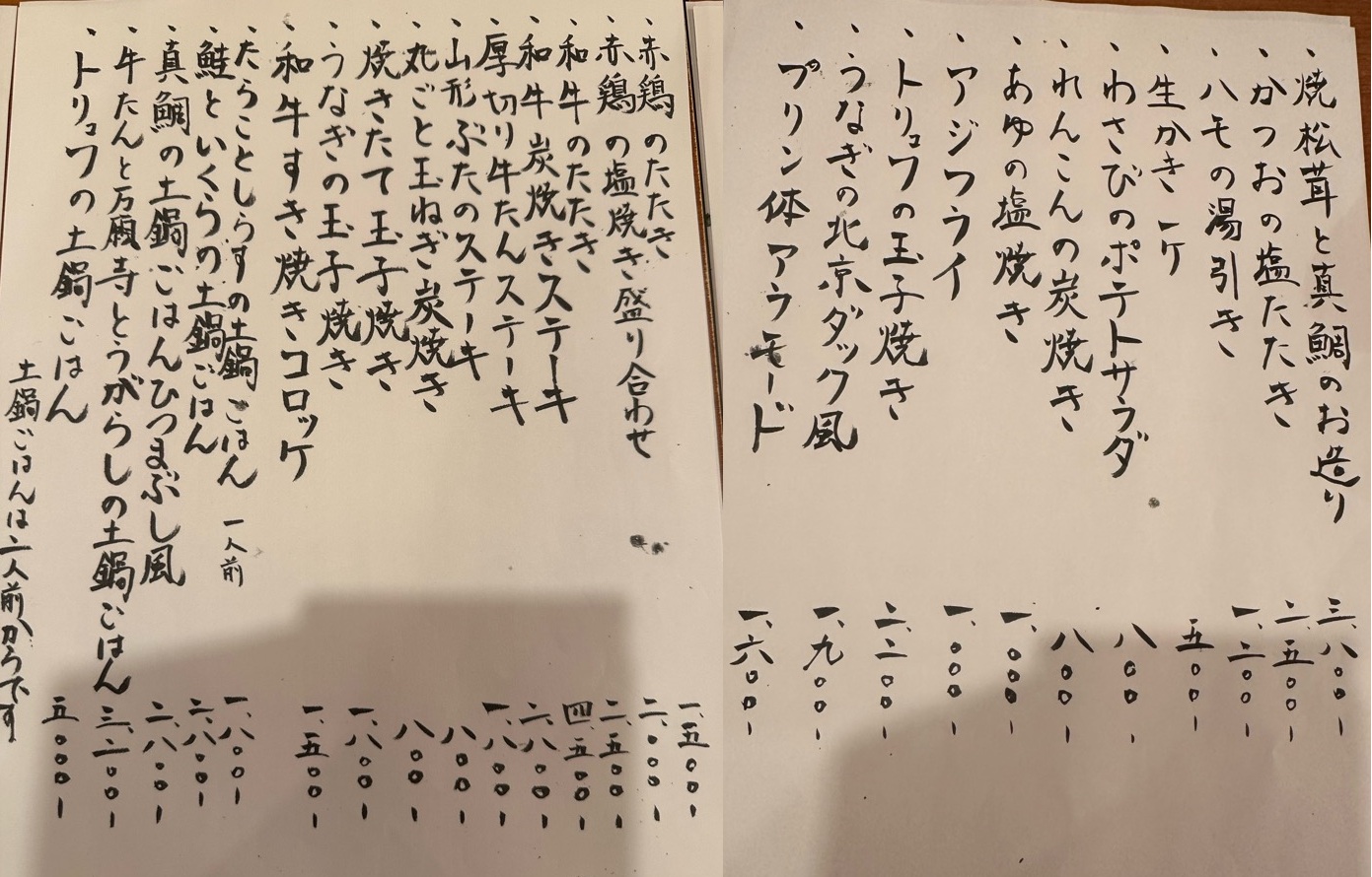 お値段は全て税抜きです。お値段が変わる場合があります。仕入れ、季節によって、メニューは変わります。最終的にはお店のメニューを見てお選び下さい。